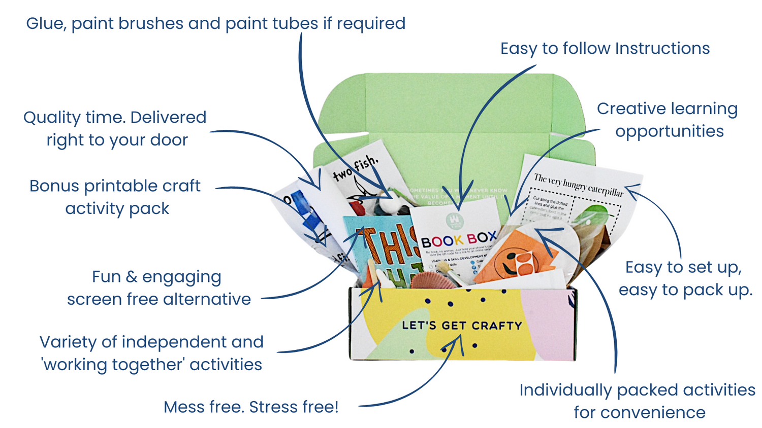 Our Craft Boxes are designed and packed in Australia by teacher and scientist Mums with your child's development at the forefront.