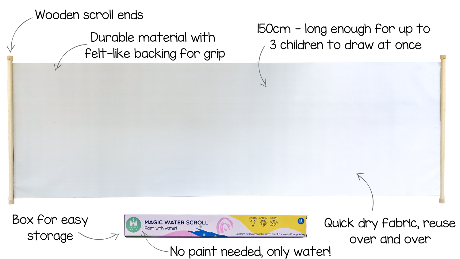 Jemma KThe scroll is fantastic! When brushed with water it looks like real black paint! It was a real hit with a range of ages at my daughter's "water play" birthday party